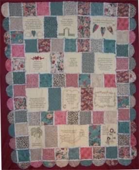 Includes 12 friendship stitchery blocks and finishing directions. Click here for close up of individual blocks